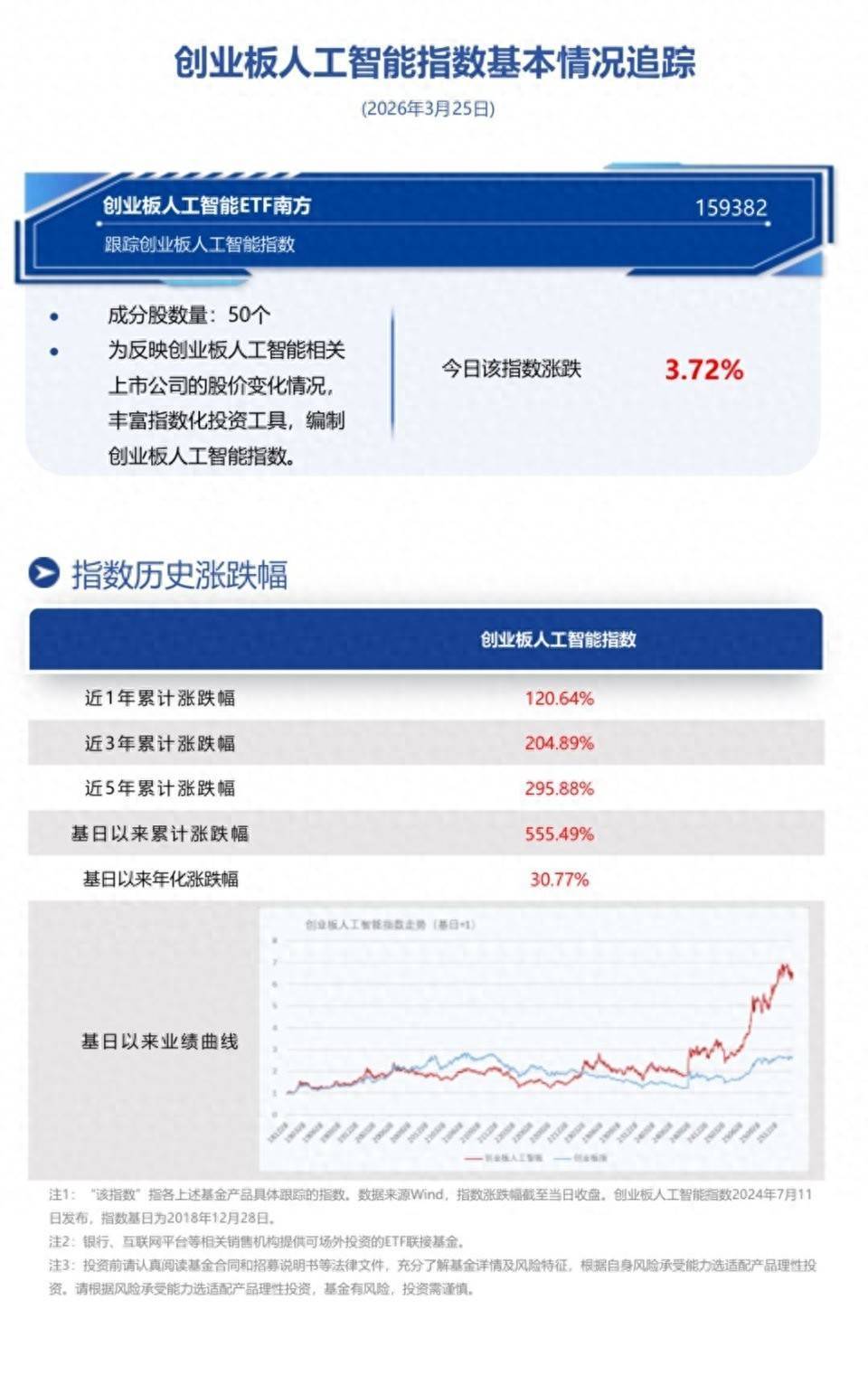 格隆汇3月25日|限度2026年3月25日收盘,创业板东谈主工智能ETF南边(159382)开yun体育网换手5.05%,成交1.06亿元,追踪方向指数创业板东谈主工智能指数(970070.CNI) 涨3.72%。