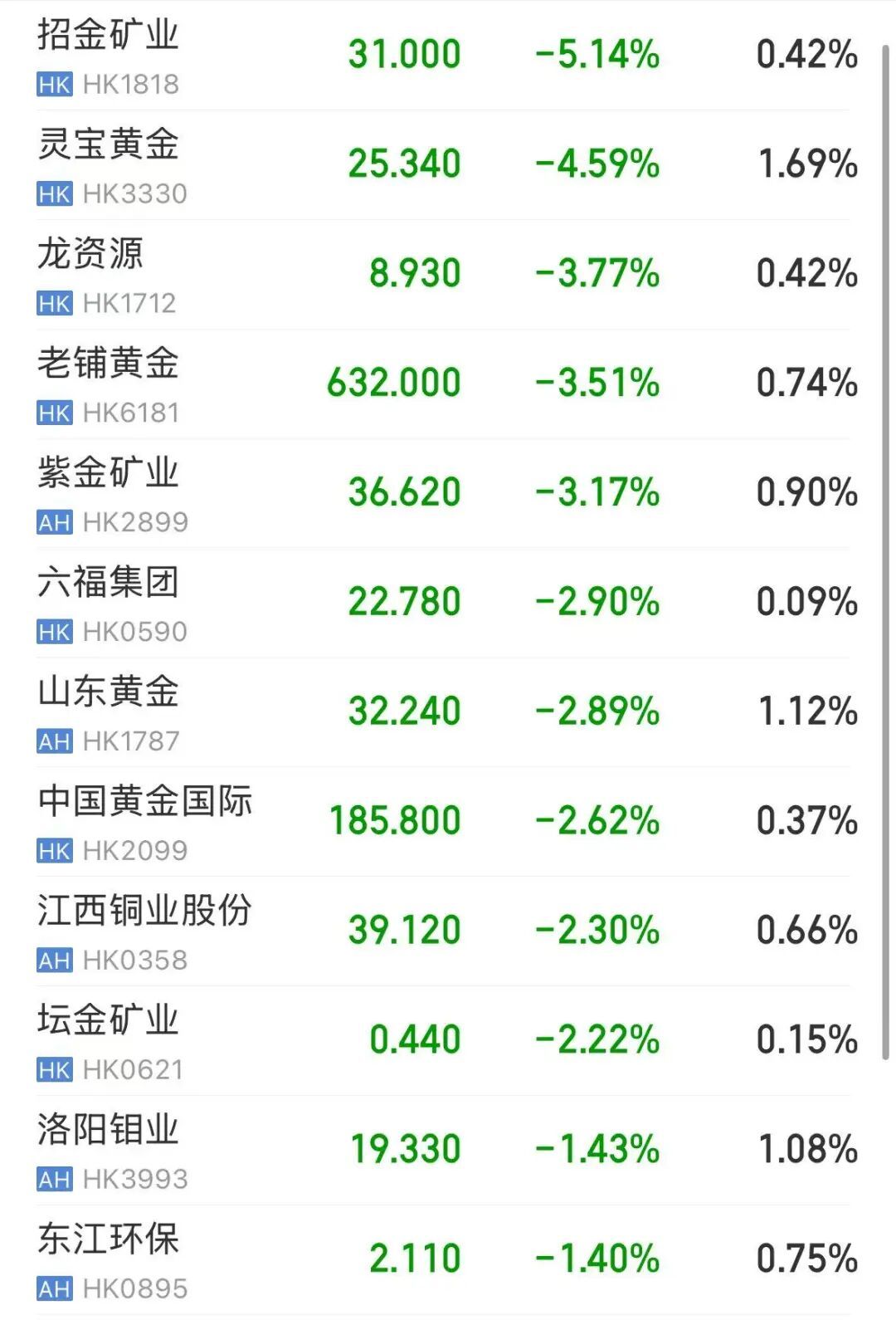 黄金板块走弱,灵宝黄金跌超4%,紫金黄金海外、老铺黄金跌超3%。